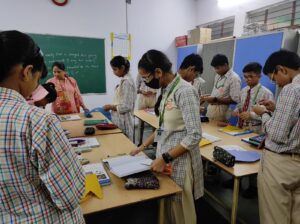 The AVB Public School’s Math Lab is a dynamic and interactive space where students can explore and learn mathematical concepts through hands-on activities and experiments. The lab is designed to foster curiosity, creativity, and critical thinking skills in students. It provides a platform for students to engage in experiential learning of mathematical concepts and develops problem-solving skills, critical thinking, and analytical reasoning among students, encouraging them to think creatively and explore the mathematical ideas which build confidence and fluency in mathematical skills.